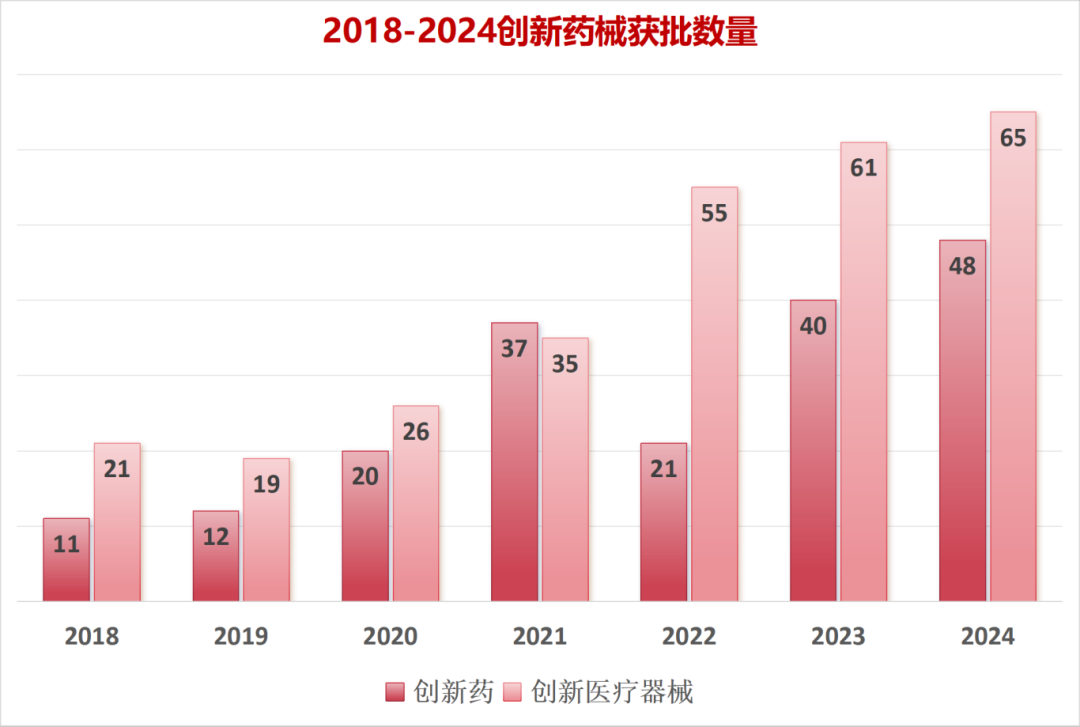 在国家政策的支持下免息炒股配资,近年来,我国创新药械获批数量总体呈稳步上升趋势。2024年,国家药监局共批准48个创新药、65个创新医疗器械上市,均创历史新高。